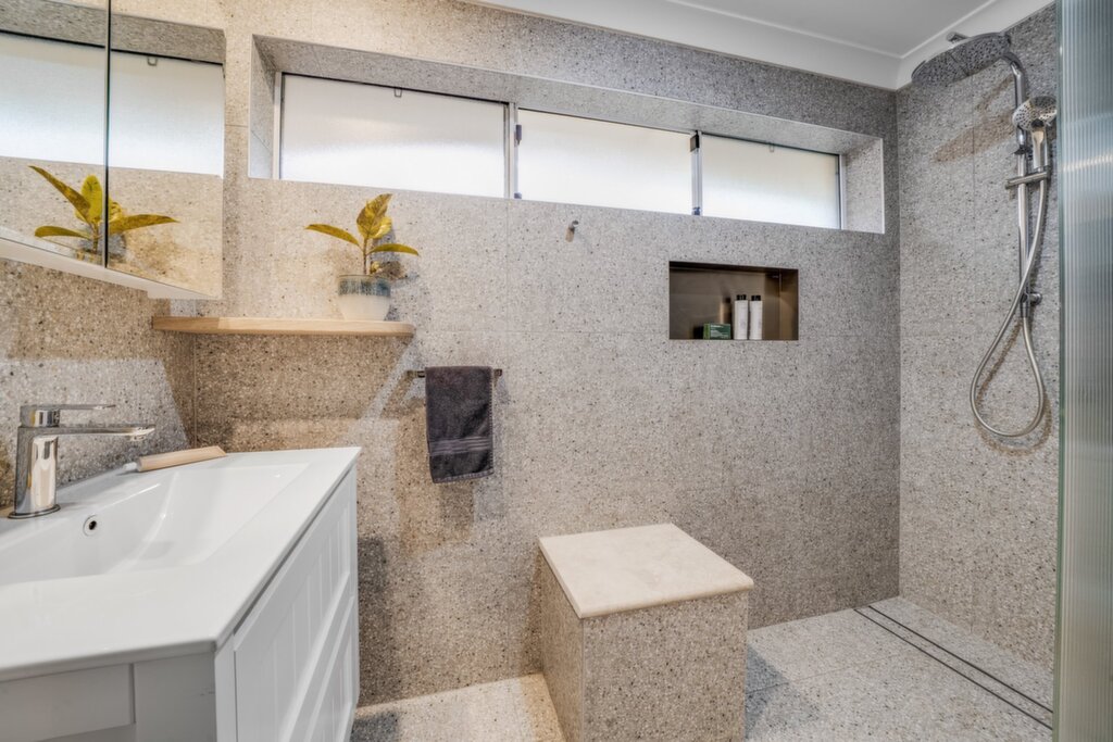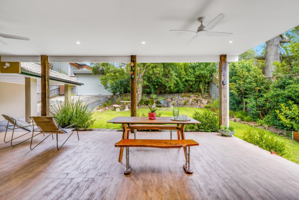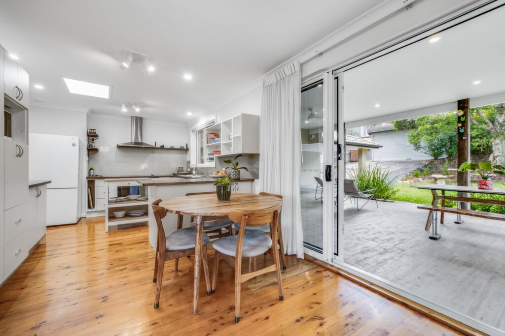 Modern kitchen with 900mm oven, electric cooktop, rangehood, glass splashbacks, dishwasher, skylight, and ample storage Open-plan family and dining area flowing to an oversized, covered alfresco with ceiling fans, lighting, and TV connection for year-round entertaining Four bedrooms, including one with built-in robes, plus a flexible fourth bedroom ideal as a home office or guest room, complete with wall-mounted storage cupboard Stylishly renovated main bathroom with shower, vanity, and toilet Downstairs rumpus/lounge with direct access to the front yard with leafy outlooks Second bathroom downstairs with shower, vanity, and toilet Private, fully fenced rear garden with lush lawn, offering a secure and child-friendly space for kids and pets Single undercover carport Separate laundry with sink and ample storage Under-house and undercover storage, ideal for tools and equipment Reverse-cycle air conditioning Gas points for heating and BBQ Polished timber floors throughout Solar panels