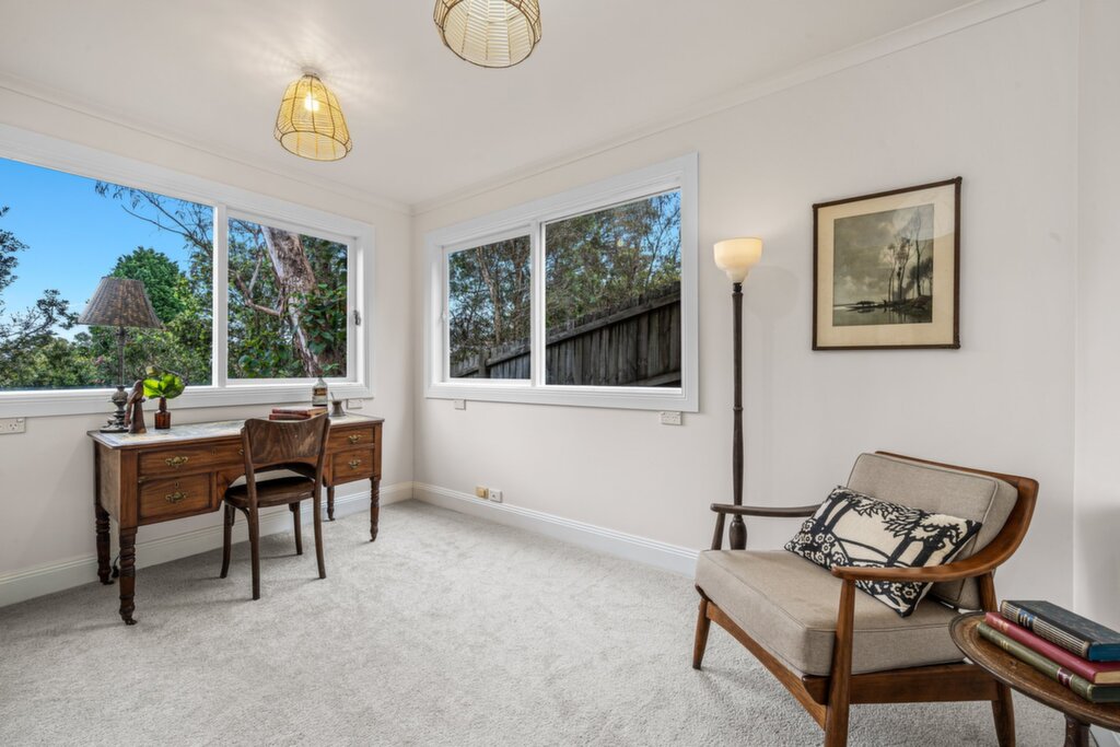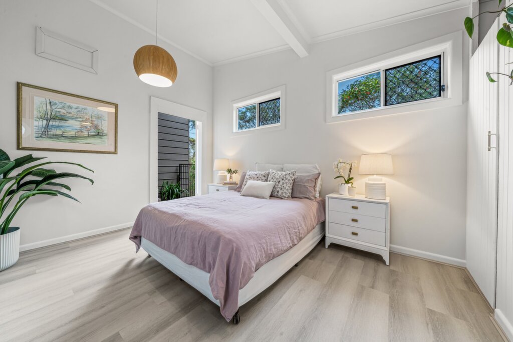 Soaring high ceilings enhancing space, light, and airflow Freshly painted interiors and brand-new flooring throughout Four bedrooms plus a study * Main bedroom with ensuite and direct deck access