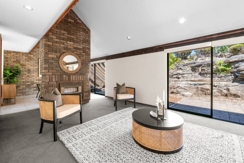 The formal lounge and dining areas are generous and separated by a feature brick fireplace, creating a cosy atmosphere for relaxing or entertaining. The family and everyday dining areas adjoin the original kitchen, complete with a breakfast bench, oven, and five-plate cooktop. Sliding doors open to both the front and rear terraces, offering a seamless indoor–outdoor flow and multiple tranquil spots to enjoy the peaceful surroundings.