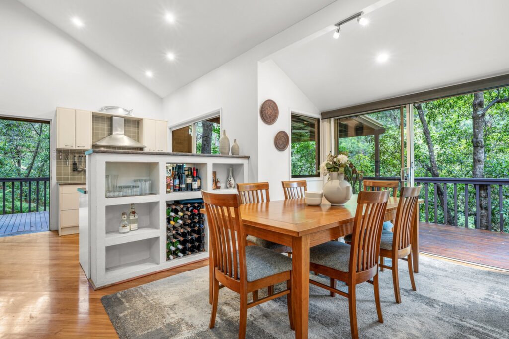 With five bedrooms, each with built-in robes, there's plenty of room for families or guests, while the outdoor spaces - including a sparkling pool and timber deck - provide a private setting to unwind and enjoy the natural surrounds.